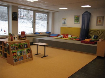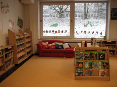 Im Keller befindet sich je ein Fachraum für Englisch und Musik sowie unser Psychomotorikraum. Außerdem wurde dort unsere schulinterne Bibliothek „Leseoase“ eingerichtet. Dort können unsere Schüler/innen vor Ort lesen, aber auch Bücher ausleihen.